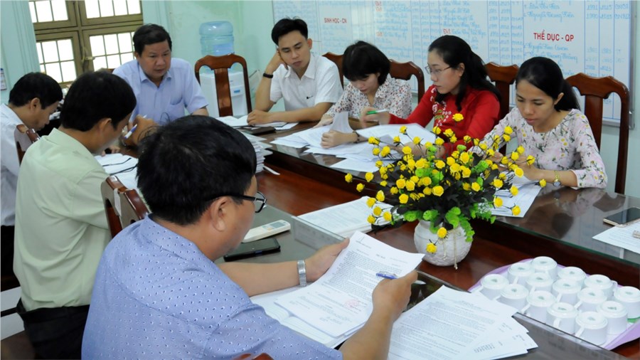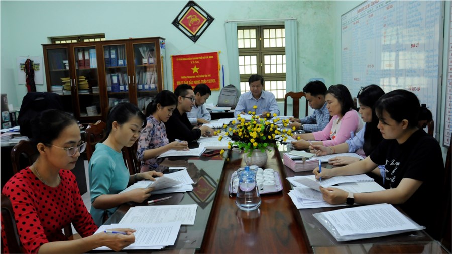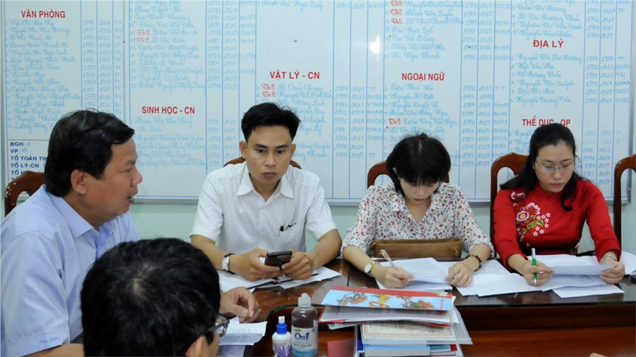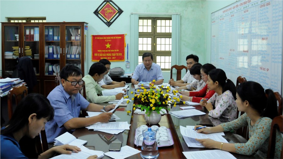Thực hiện Công văn số 1145/SGDĐT-KTKĐ ngày 19 tháng 4 năm 2021 về hướng dẫn hội nghị cha mẹ học sinh để phổ biến về kỳ thi tốt nghiệp trung học phổ thông năm 2021, chiều thứ Năm, ngày 22 tháng 4 năm 2021, tổ giáo viên chủ nhiệm 12 đã tiến hành họp với sự chủ trì của thầy Nguyễn Thanh Tòng - Hiệu trưởng nhà trường, tổ trưởng tổ giáo viên chủ nhiệm.