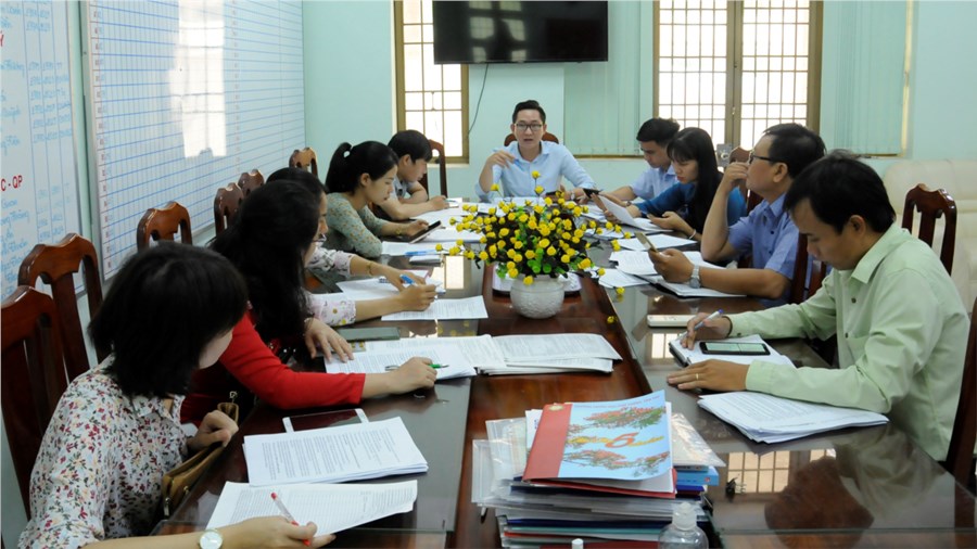 Anh Lâm Nguyễn Nhật Minh phổ biến công tác hướng dẫn học sinh ghi hồ sơ tốt nghiệp trung học phổ thông và công tác kiểm dò chéo để đảm bảo sự chính xác.
